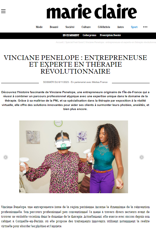 Le magazine Marie Claire a réalisé un article sur mon accompagnement en réalité virtuelle.